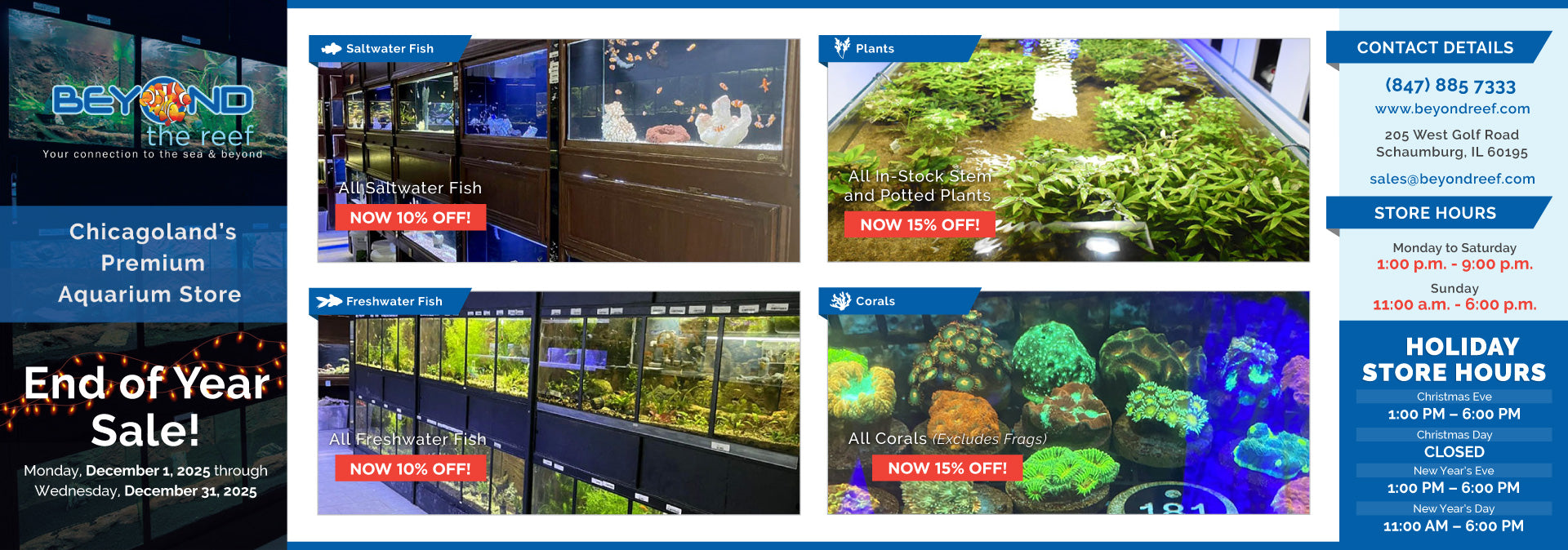 Beyond the Reef is a retail store dedicated to the aquarium hobby. We carry everything necessary to start, stock and maintain a happy and healthy aquarium ecosystem. From fish, shrimp, live plants, to colorful corals, our inventory is composed of the highest quality livestock available.